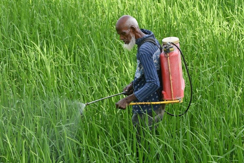 Remember to calibrate your walking speed to deliver the correct application rate, as indicated on the product label. After use, thoroughly rinse the backpack sprayer with clean water, following the manufacturer’s instructions, to prevent corrosion and ensure future effectiveness. Proper rinsing is vital for longevity and safety.