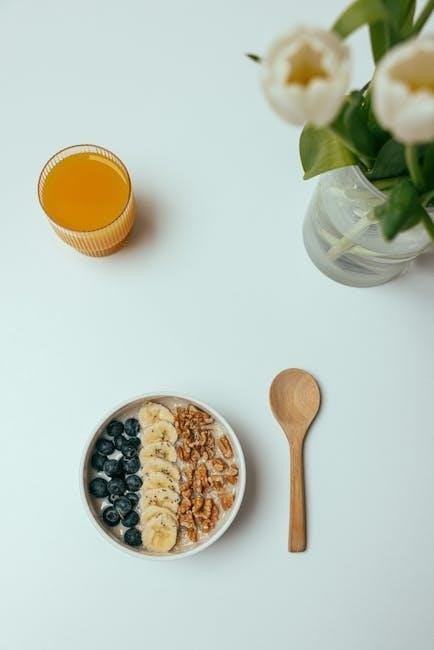 Incorporate light exercise, if possible, to boost calorie expenditure. Focus on mindful eating, savoring each portion to enhance satiety. Remember, the PDF emphasizes this is a short-term plan; successful long-term weight management requires a sustainable lifestyle change post-diet. Prepare meals in advance to avoid impulsive choices and ensure compliance with the PDF’s guidelines.